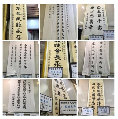 这会儿网友们传来香港世界殡仪馆仪式的视频和照片,庄严肃穆的葬礼办的非常风光,截取一些挽帐、挽联如下: